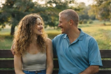 We sit and i put my arm around you. You turn and stare into my eyes. Holding your gaze, I kiss you and embrace you strongly.
