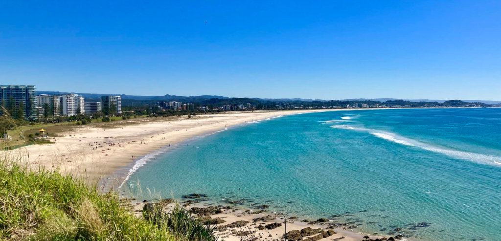We removed our shoes and walked across the soft sand down to the harder sand near the water. We walked very slowly south along the water hand in hand. As Tugun eventually became the iconic surf destination that is Kirra Beach.
